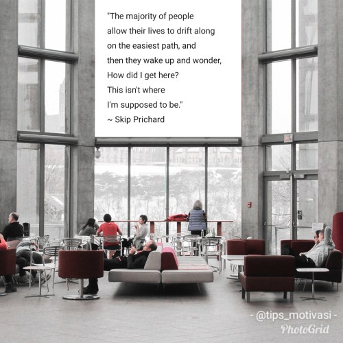 Kecenderungan ini biasa terjadi, ketika orang membiarkan hidup mereka melayang di jalan termudah, dan kemudian mereka bangun dan bertanya-tanya, bagaimana saya bisa sampai di sini? Ini bukan tempat yang seharusnya saya berada atau saya inginkan.